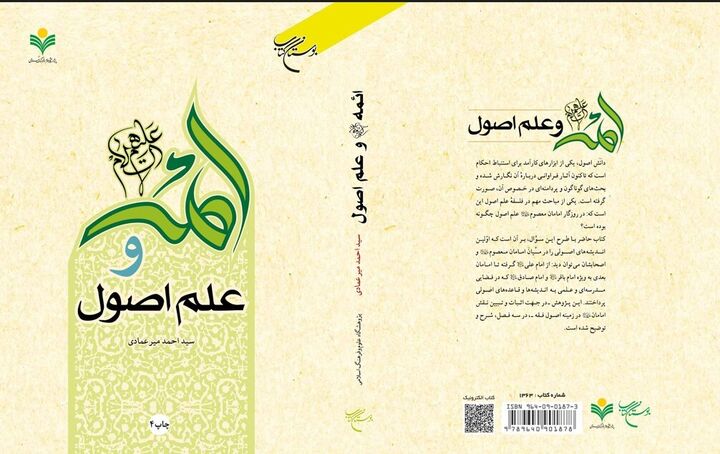 به گزارش روابط عمومی دفتر تبلیغات اسلامی حوزه علمیه قم، کتاب «ائمه (ع) و علم اصول» اثر سید احمد میرعمادی در پژوهشگاه علوم و فرهنگ اسلامی تهیه و در ۴۰۰ صفحه به همت مؤسسه بوستان کتاب به چاپ چهارم رسید.