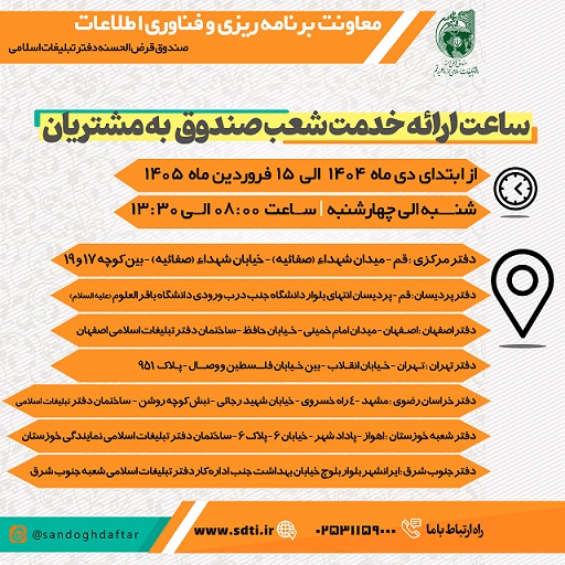ساعت کاری صندوق قرضالحسنه دفتر تبلیغات اسلامی در فصل زمستان ۱۴۰۴ اعلام شد + آدرس شعب